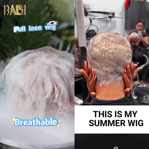 BAISI Light Blonde Short Wave Pixie Cut Full Lace Wig