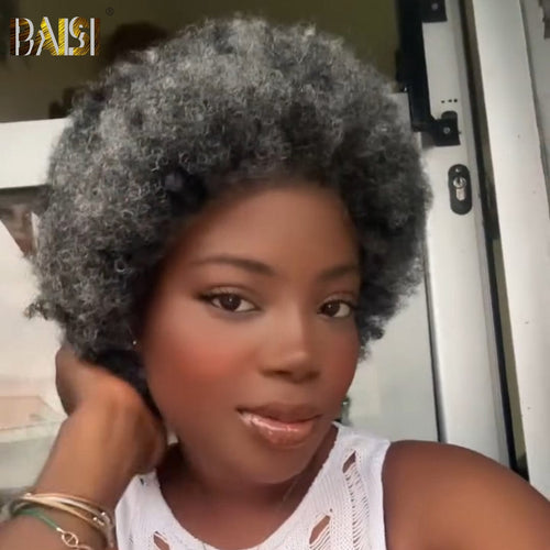 BAISI 13X4 Lace Glueless Afro Curl Natural Color Wig