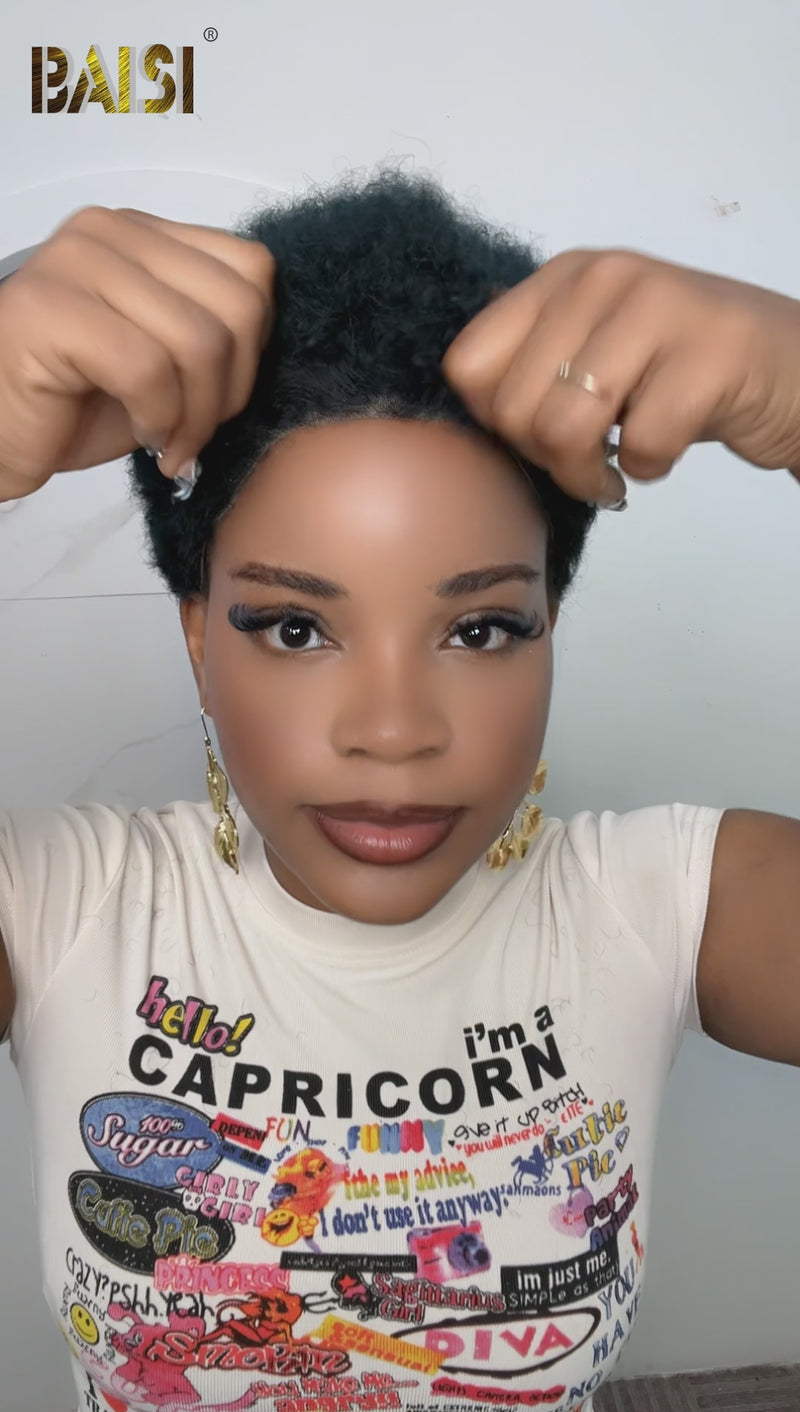 BAISI 13x4 Lace Bouncy Afro Curl With Green Highlight Glueless Wig