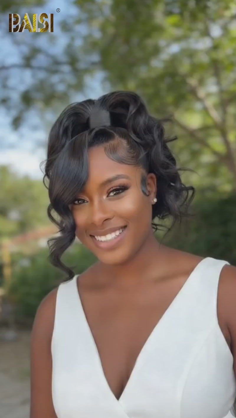 BAISI Pre-styled Updo Ponytail Wavy 360 Lace Wig