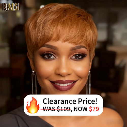 BAISI Machine Made Human Hair Pixie Cut Wig
