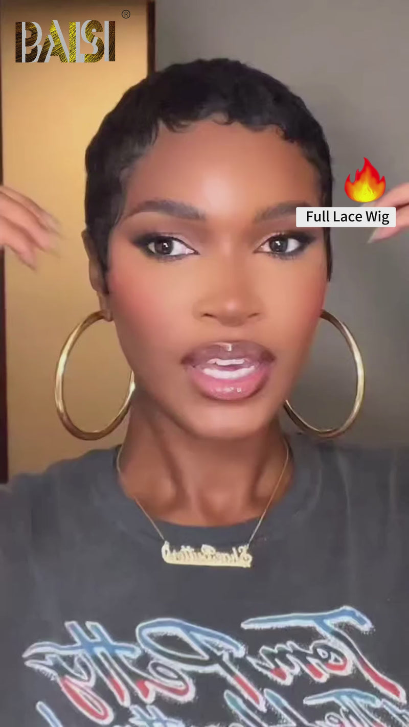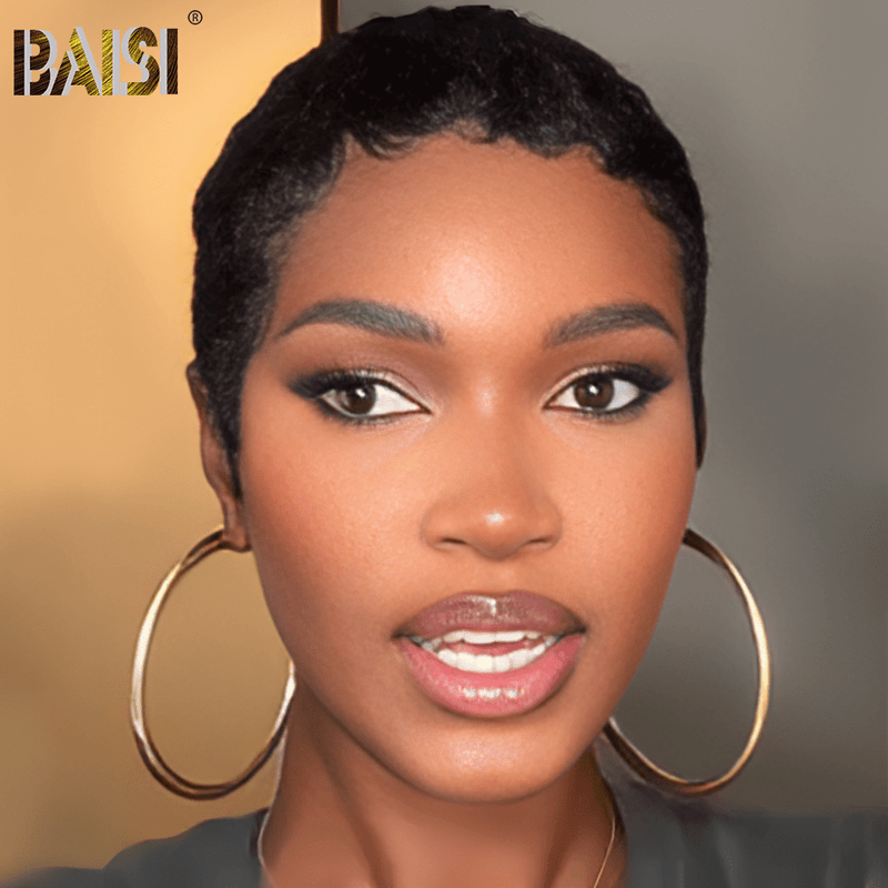 BAISI Natural Black Super Short Full Lace Straight Wig