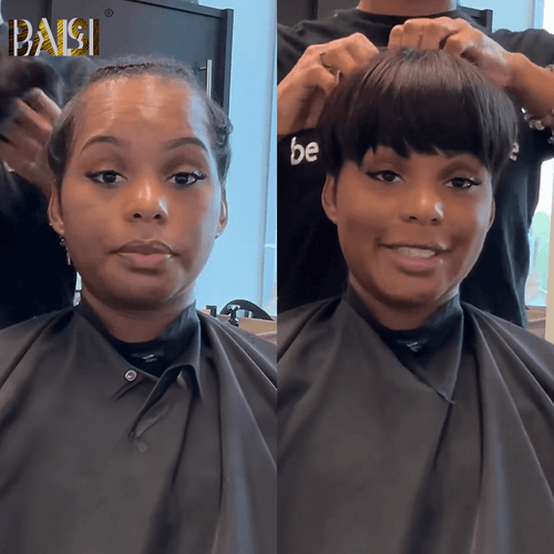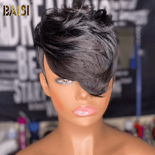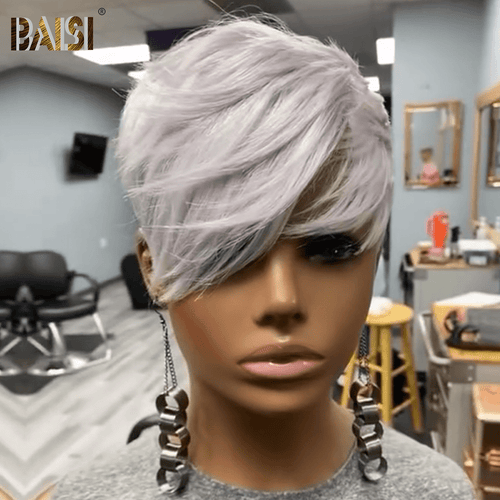 BAISI Machine Made Super Short Cut Straight Wig