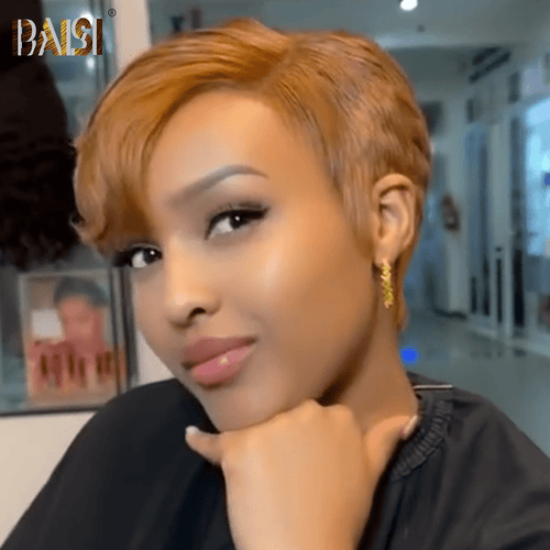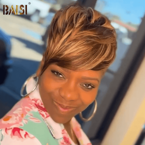 BAISI Machine Made Straight With #27 Highlight Pixie Wig