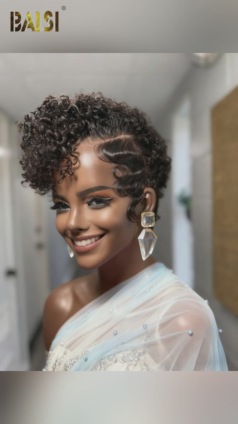 BAISI 13X4 Lace Dark Brown Curly Side Part Wig