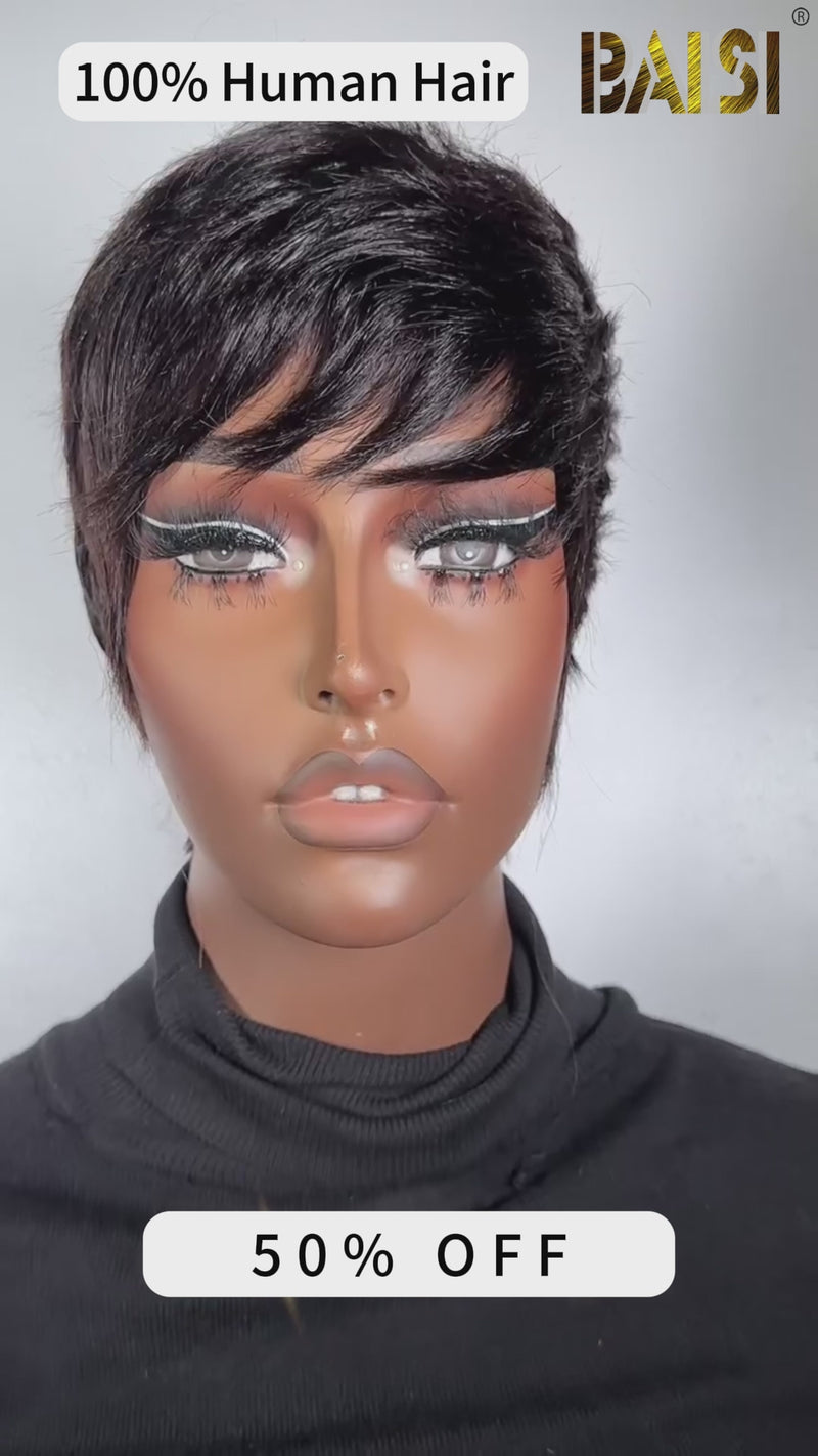 BAISI Machine Made Cool Pixie Short Cut Wig
