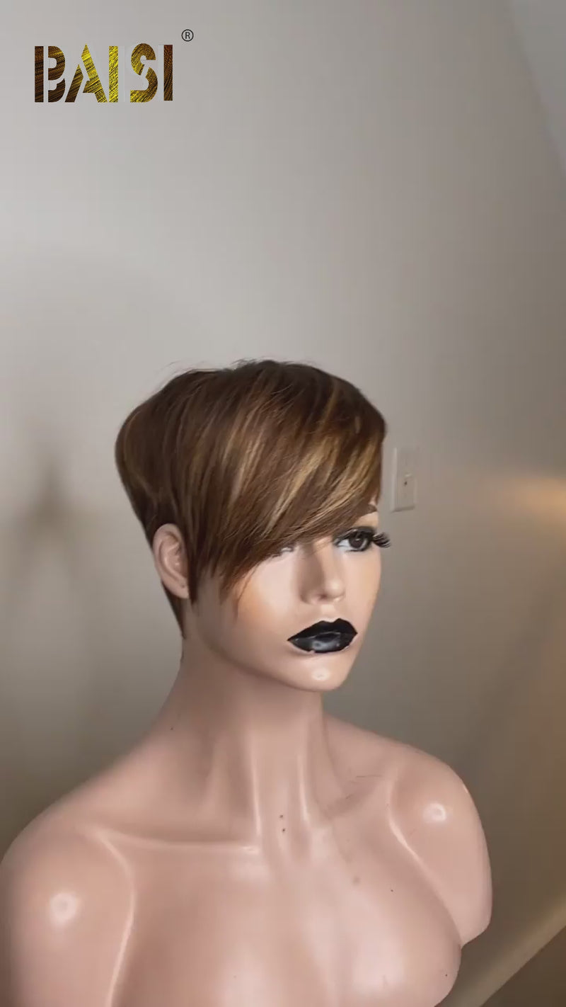 BAISI Machine Made Straight Sexy Side Part Mix Color Wig
