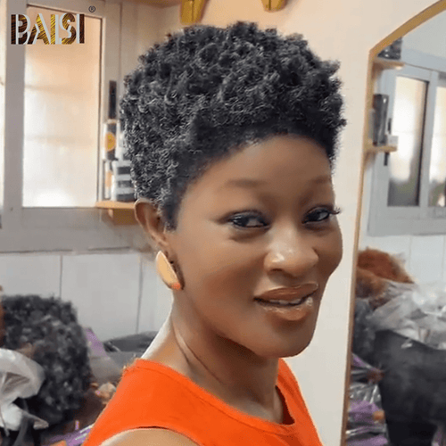 BAISI Perruque de cheveux humains afro bouclés avec dentelle sur le devant
