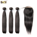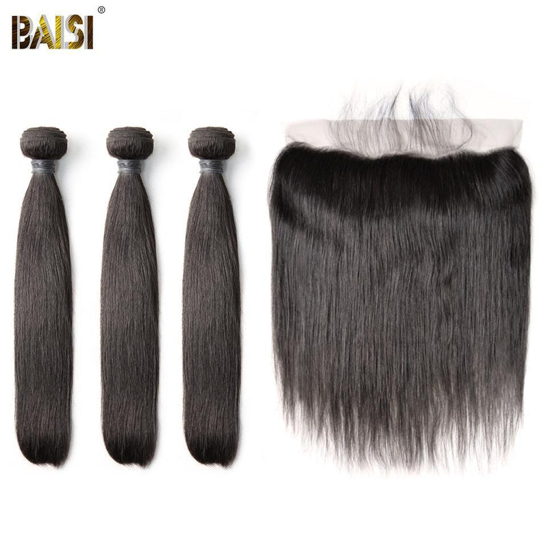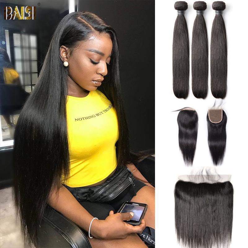 BAISI 10A Paquets de cheveux humains droits vierges avec fermeture/frontal